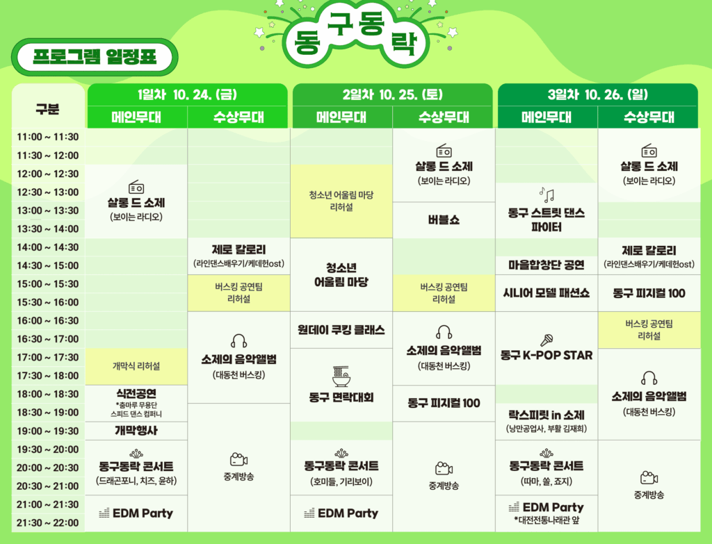 ✨컬쳐플레이의 꿀팁! 대전 동구동락 축제공연은 무료공연으로, 주말 공연은 인파가 많이 몰릴 수 있습니다.